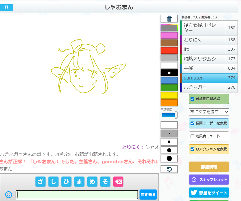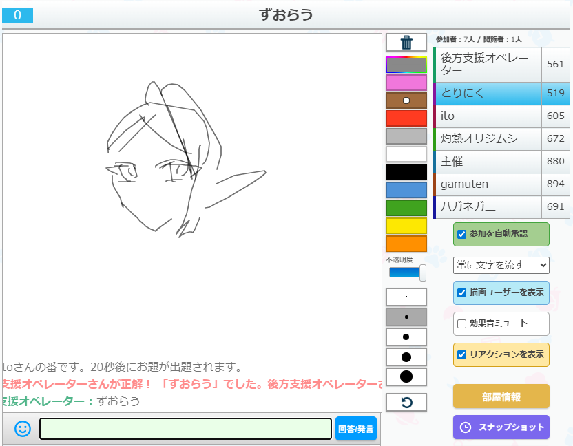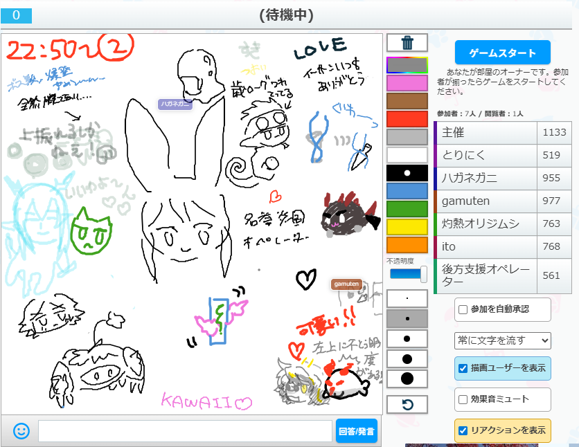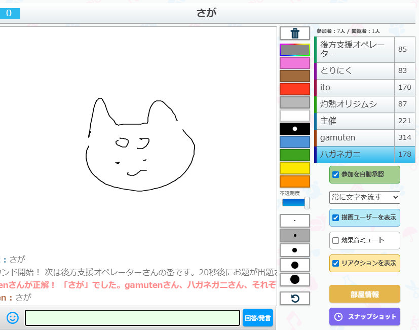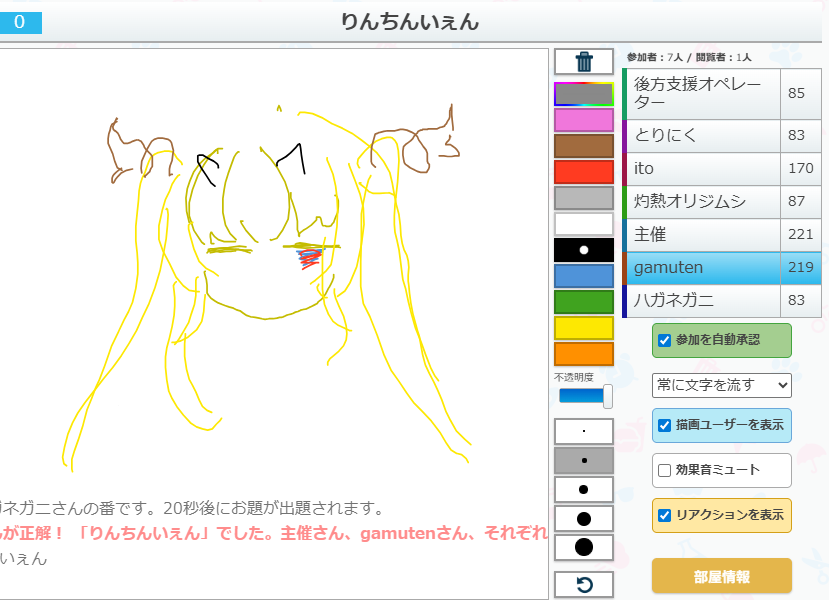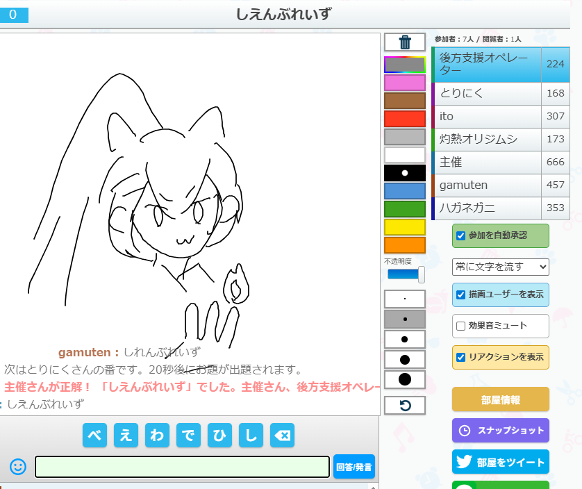 うろ覚えお絵かきクイズゲーム「ピクトセンス」を22時から開催しました。