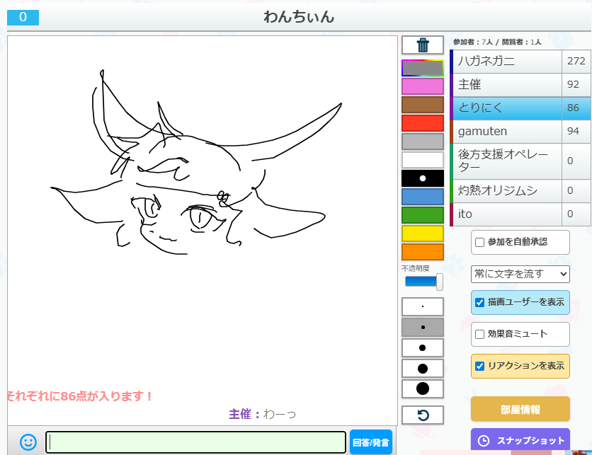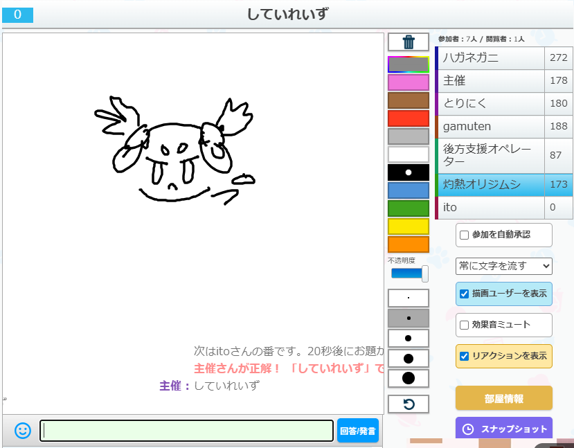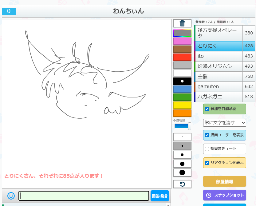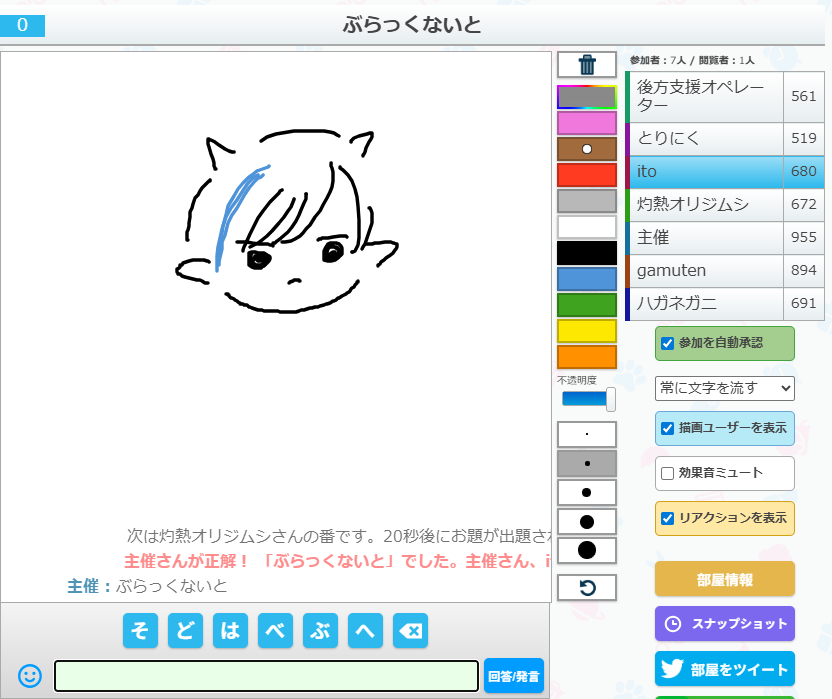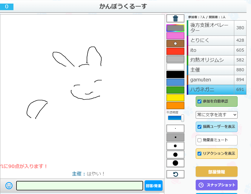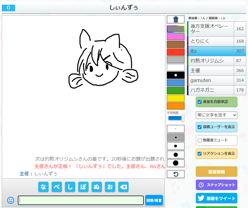 うろ覚えお絵かきクイズゲーム「ピクトセンス」を22時から開催しました。