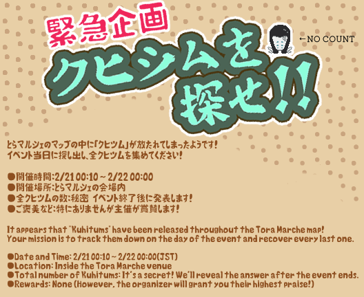 とらマルシェ会場に「クヒツム」が散らばってしまったので、参加者さまに見つけていただこうという企画です。